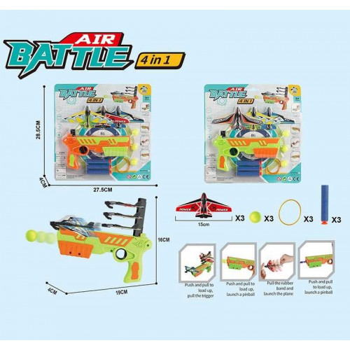 Запускалка-пістолет 3літаки, 3кульки, 3патрони, планш. WY303